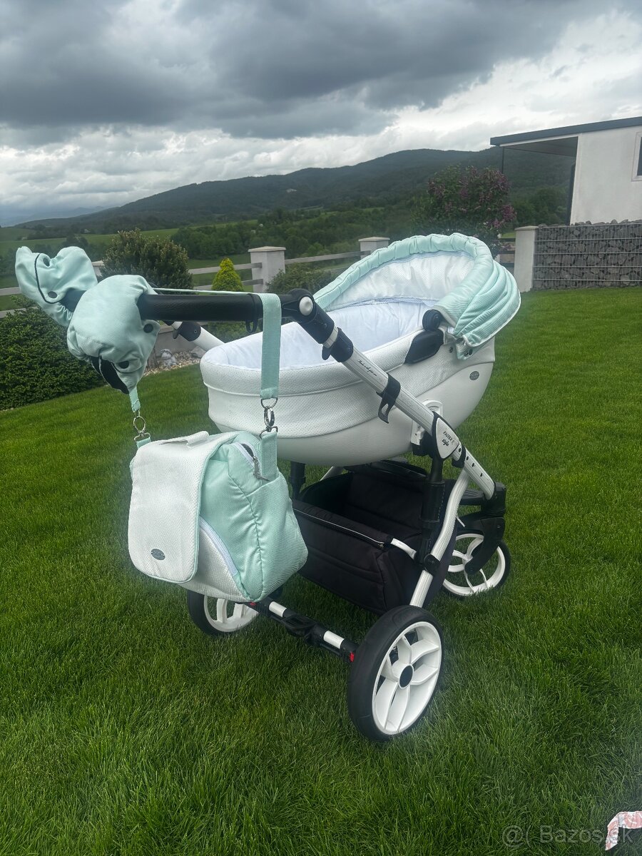 Predám kočík Baby Merc Faster II po jednom dieťati v nádhernej mentolkovo- bielej farbe.