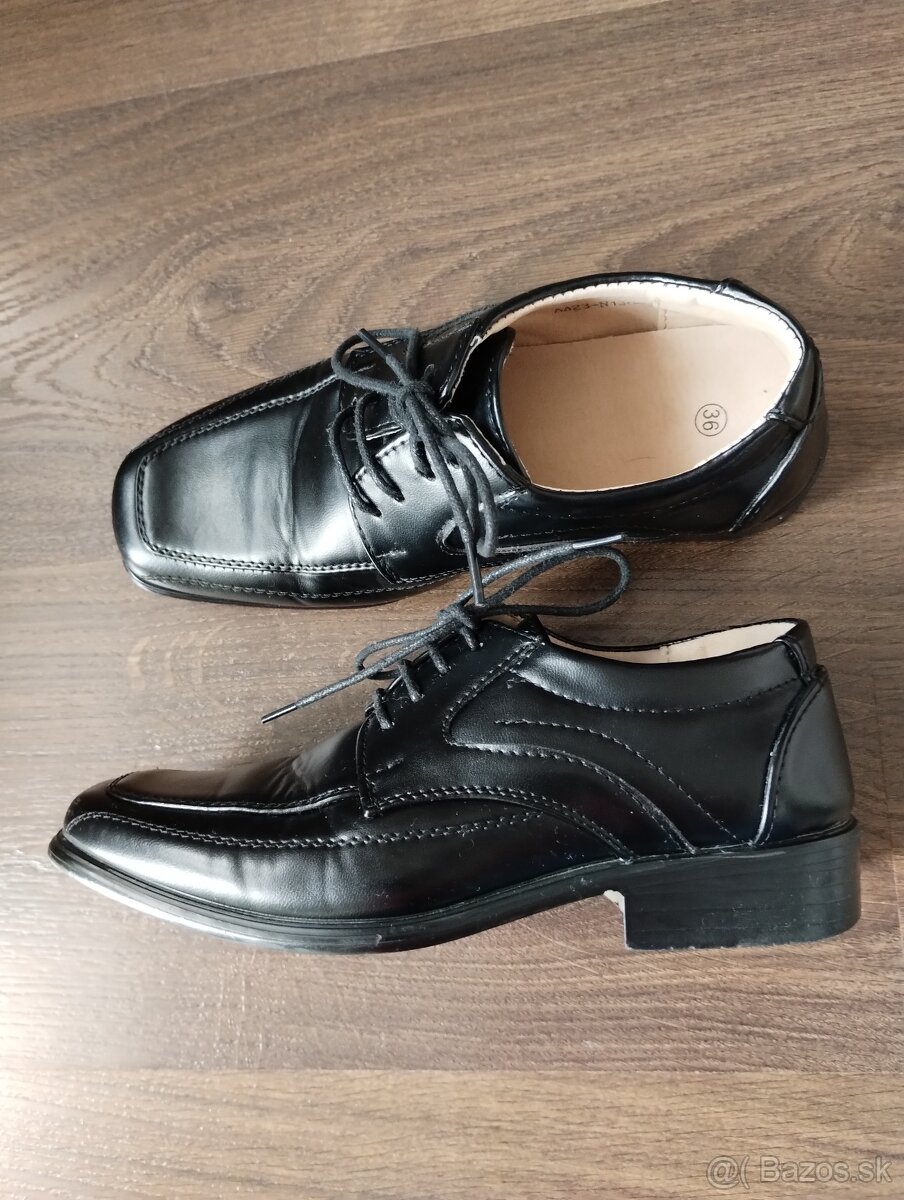 Predám spoločenské chlapčenské topánky č. 33-34 a druhé č. 36. Pekné, nepoškodené, elegantné,obuté párkrát.