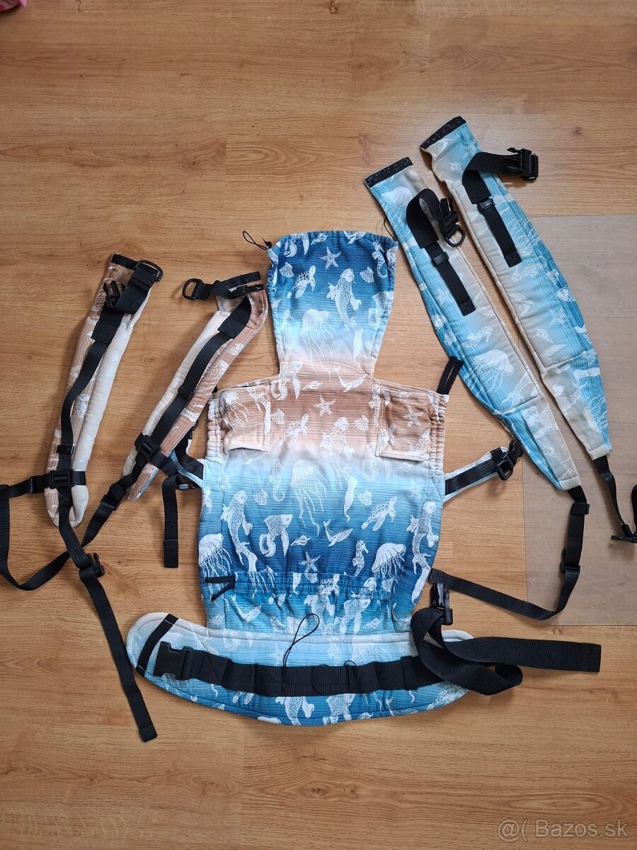 Odnímateľné popruhy, možnosť nosiť vpredu so širokými krížovými popruhmi, ktoré sú fakt pohodlné a perfektne rozložia váhu po celom chrbte. Taktiež možnosť klasických popruhov, ktoré sa dajú použiť aj na nosenie vzadu - toto sme hodne využívali, keď už dieťa vedelo sedieť :).