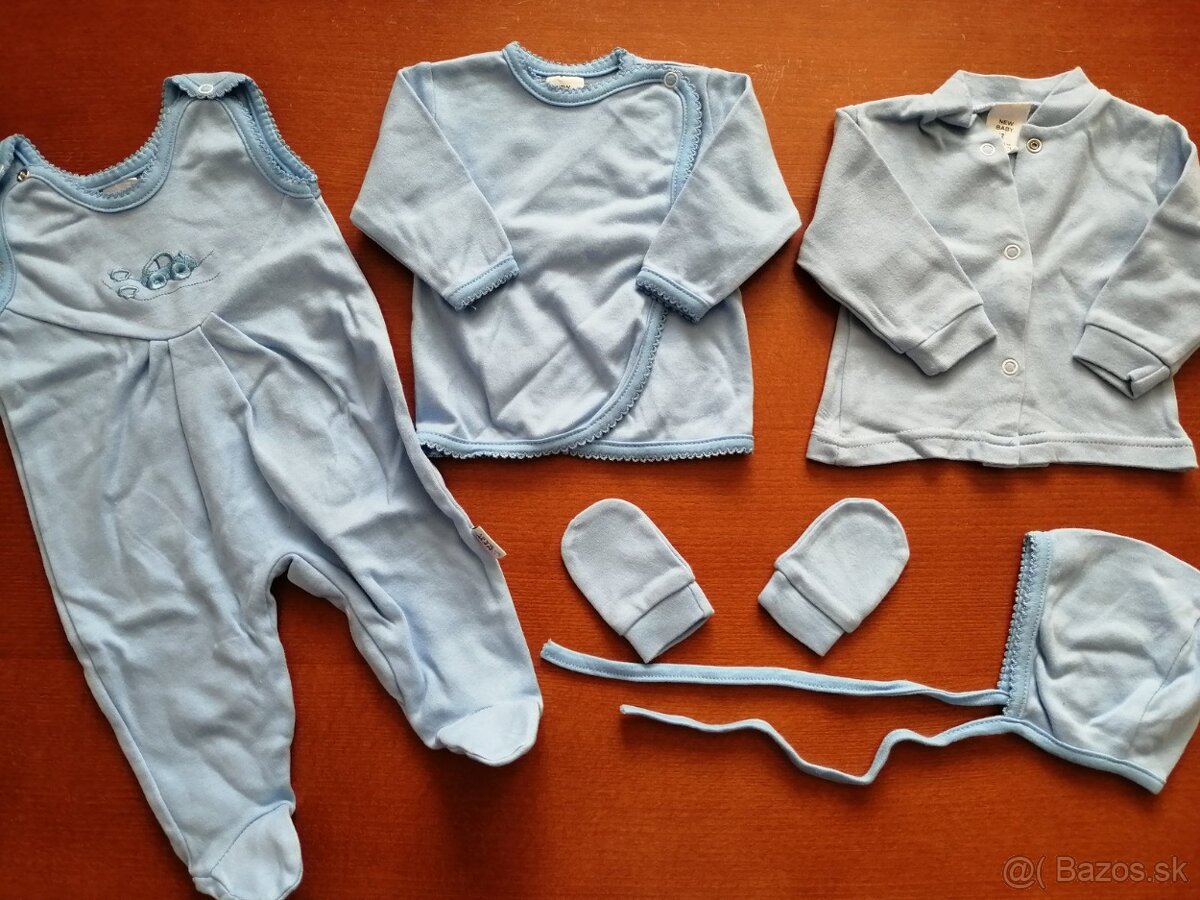 Krásna bledomodrá 5-dielna súprava pre bábätko veľ. 62. Košieľka a čiapka nenosené - iba opraté, dupačky oblečené 2x