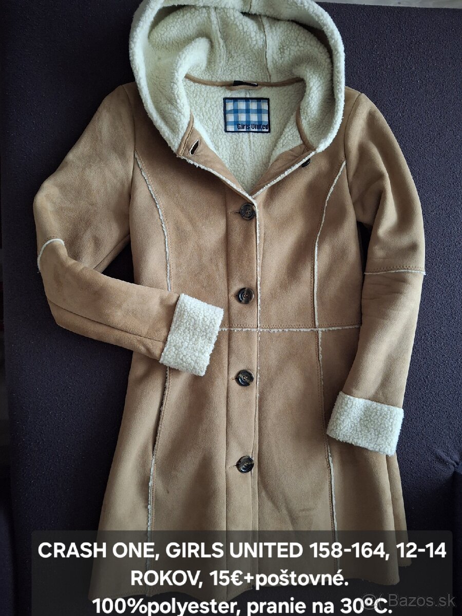 Predám úplne nový elegantný dievčenský kabát, nenosený, neopraný, CRASH ONE, 158-164, 12-14 rokov.