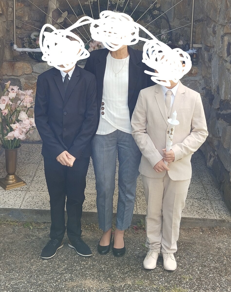 Obleky na predaj čierny velk.152 nohavice+ sako, béžový- velk.146 nohavice, sako,vesta,biela košeľa s krátkym rukávom a kravata+ máme k bezovemu aj topánky v rovnakej farbe velk.32 treba ale myslieť na to , že spoločenske topánky sú o niečom väčšie ako normálna obuv.cena čierneho 50€ a béžový 80€ Topánky 25€ .Oba obleky aj topánky boli použité iba raz! V prípade vážneho záujmu sa vieme dohodnú