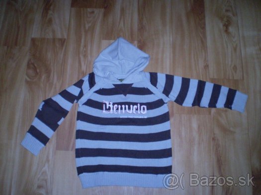 Chlapčenský pásikavý svetrík Kenvelo vo veľkosti 104-116 bez poškodenia.Na rukávoch záplatky na prednej strane logo značky.,kapucka.zadná dl.43cm,šírka 36cm,dl.rukáva od krku-43cm.cena-5,00+poštovné