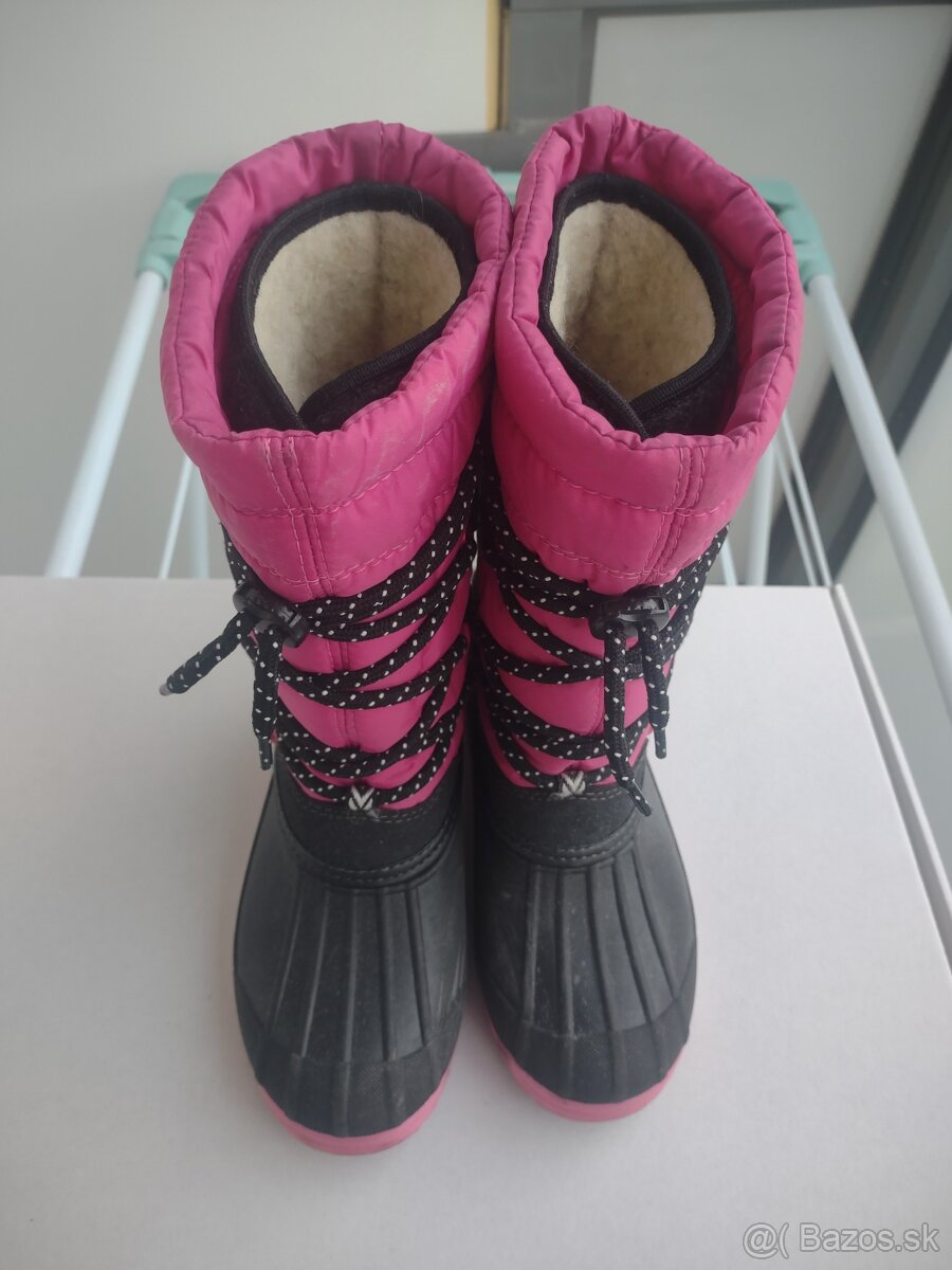 Snehule Demar - [8.12. 2025]Ponúkam na predaj snehule značky Demar, veľkosť 25/26. Snehule sú vo veľmi dobrom stave, zateplené ovčou vlnou. Snehule kvalitné, na šnurovanie, spodná časť chráni nožičky pred mokrým snehom, ľahká údržba. Cena 13 EUR.