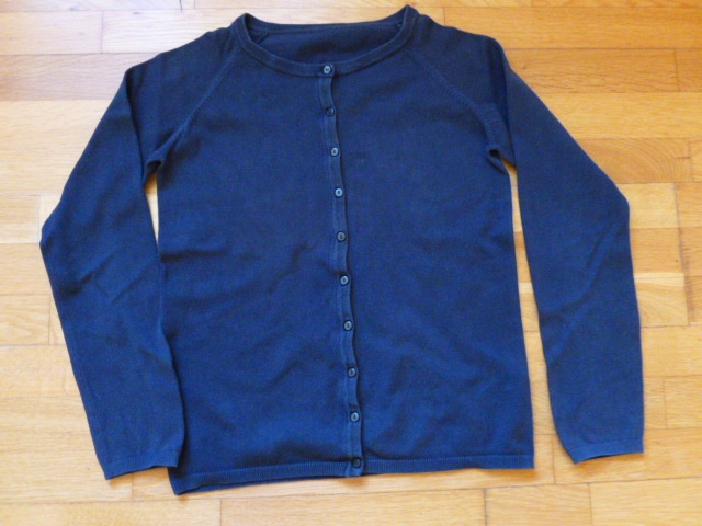 Nosený svetrík, jemný úplet, zapínanie na gombičky, zn. Tchibo, v. 170/176, nosenie vidieť mierne na farbe. Materiál 70% bavlna, 30% polyamid. Celková dlžka 60cm, šírka popod pazuchy 2x45cm, vonk. rukáv od krku 69cm, vnútorný rukáv 50cm.Cena 2euro + pošta.