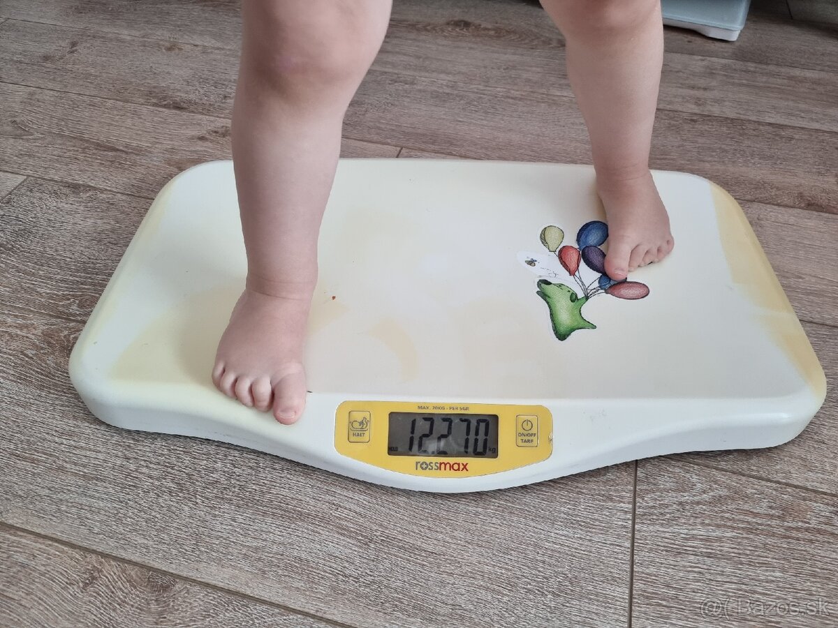 Priestor pre dieta na vazenie je 55x28cm. Bateria CR2032 (gombikova bateria), nova vydrzi na dve deti po sebe. Max. hmotnost 20kg a rozlisenie vahy je 5gramov. Takze viete aj vazit dieta pred a po krmeni a zistit kolko vypilo. Plus tato vaha oproti obycajnej ma vyhodu, ze sa pocita s tym, ze budete vazit pohybujuce sa dieta a vaha tak niekolko sekund priemeruje a zobrazenie zostane stat na fixnej hodnote a mozte v klude odcitat.