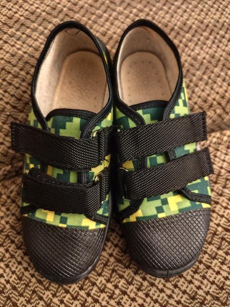 Predam kvalitne pekne papučky so vzorom minecraft v super stave. Velkost je 29, vnutorna dlzka 18,5cm. Vnutri je ortopedicka perforovana vlozka.
