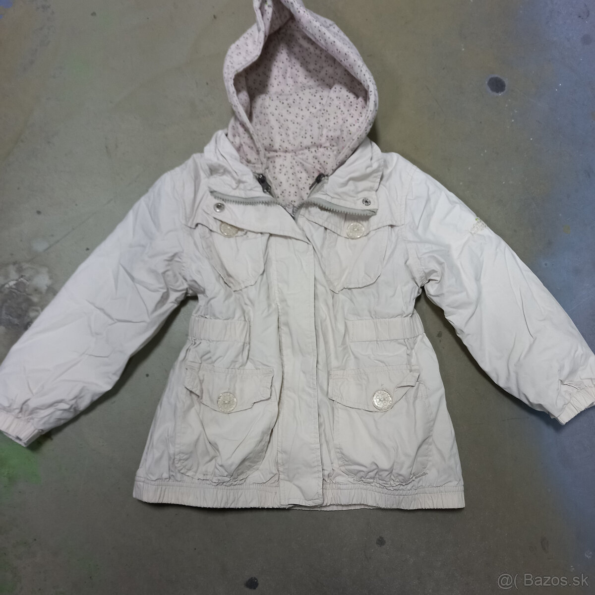veľ.98/104.Ponosite dlhšie aj skôr.Super stav,bez poškodenia.Mikina sa da odopnuť (nosiť zvlašť) a kabatik bude vhodný na jar.Odporúčam