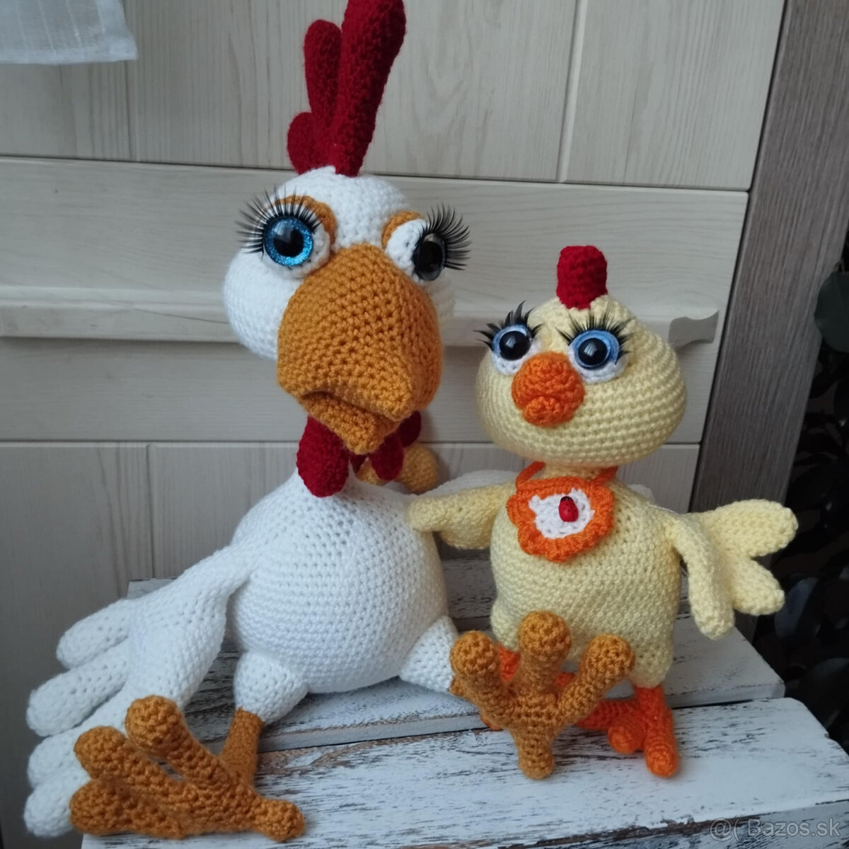 Predám háčkovaného sediaceho kohúta s kuriatkom-vhodné ako dekorácia