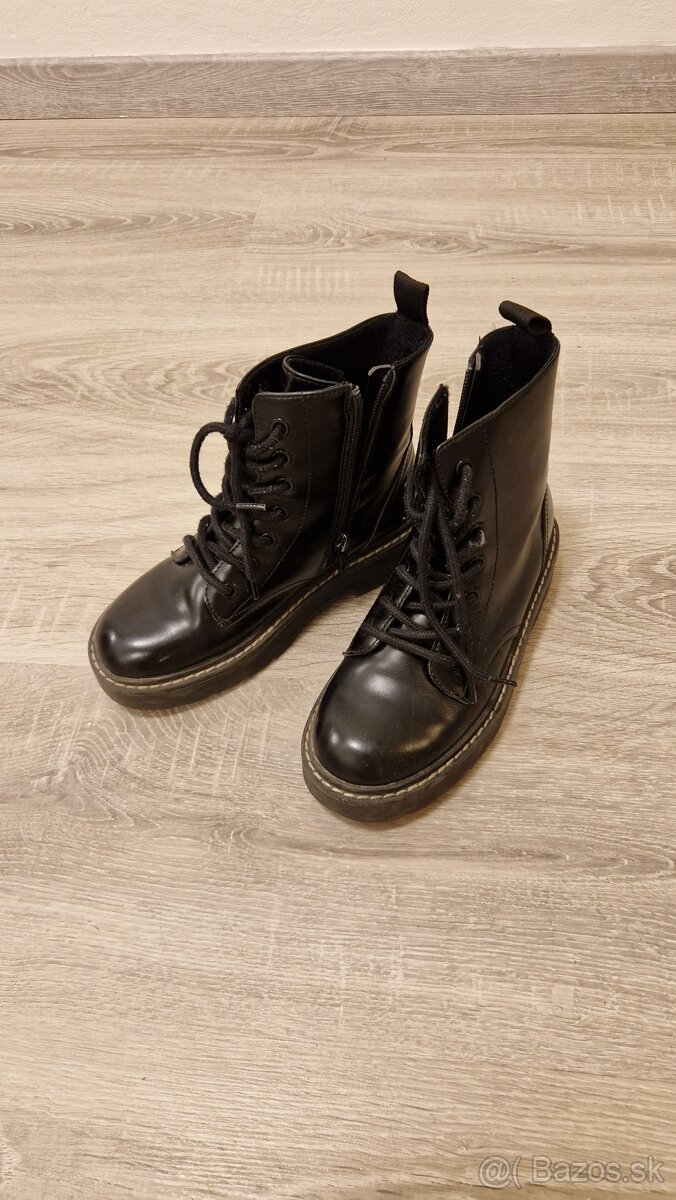 Predám detské čierne čižmičky na zips aj šnurovanie, vhodné pre dievčatá aj chlapcov. Veľkosť: vonkajšia dĺžka 23 cm, vnútorná cca 20-21 cm. Málo nosené. Len na dobierku.