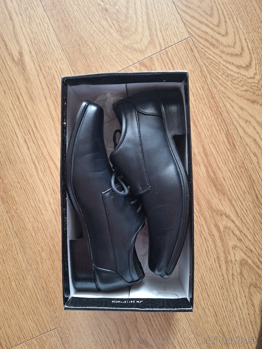 Za výhodnú cenu predám tieto raz obuté čierné chlapčenské spoločenské topánky na osobný odber.