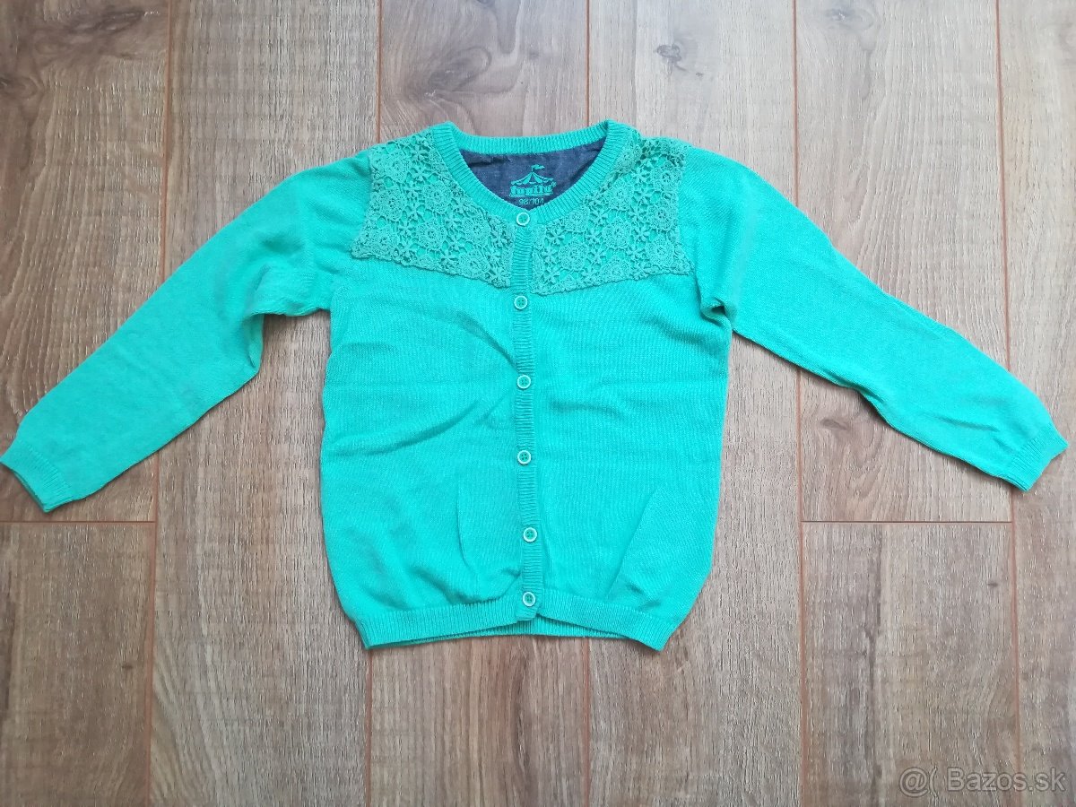 Predam novy dievcensky sveter, velkost 98-104, zelenej farby.