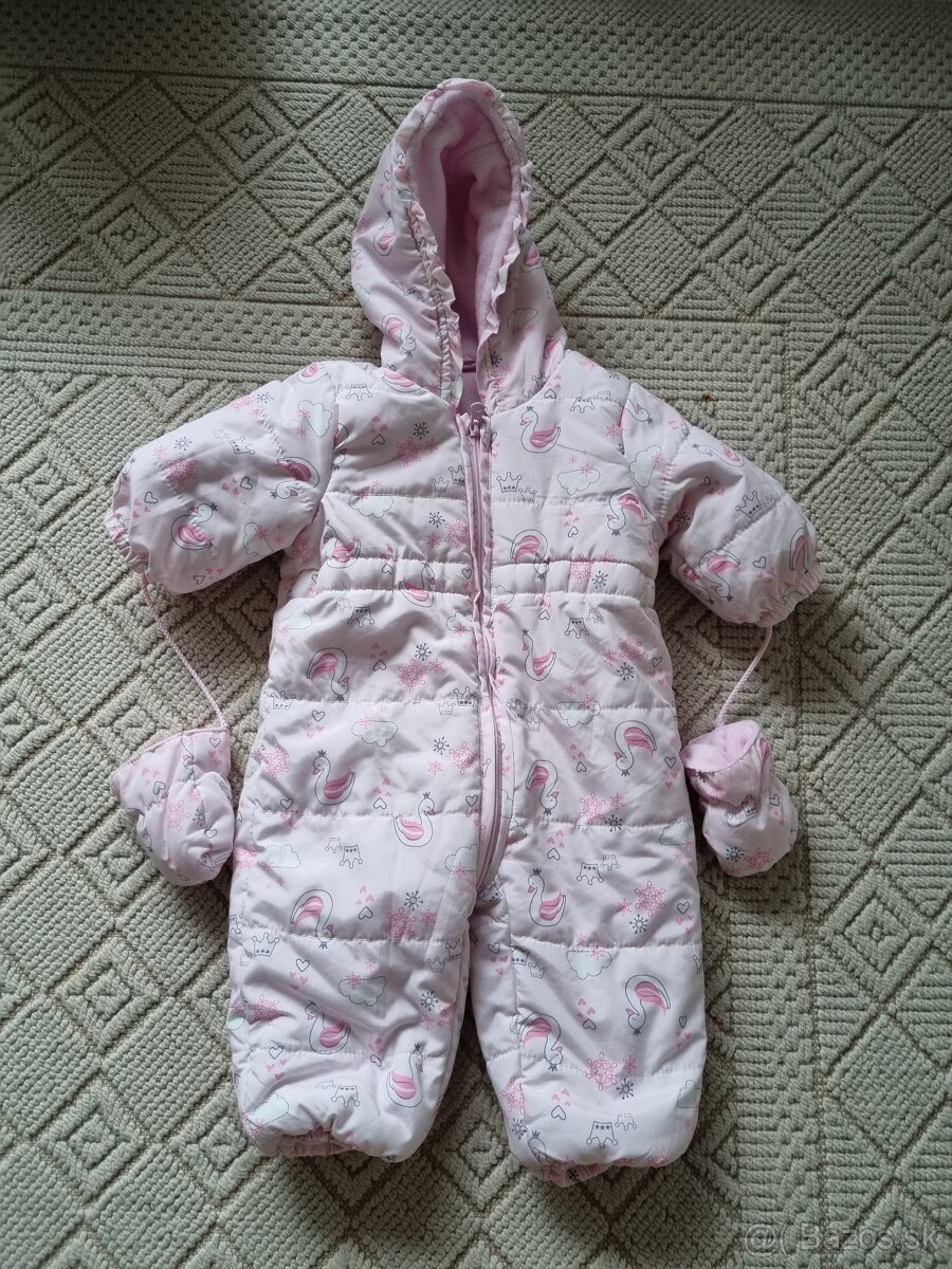 Zimný overal - [22.12. 2025]Teplý zimný overal na predaj, veľkosť 74/80 (určite sa dá ponosiť aj dlhšie), z vnútra teplá flísovina, rukávy sa dajú vyhrnúť a vytvoriť rukavičky, na nožičkách sa dá tak isto vyhrnúť na nôžky ako aj neskôr nosiť s čižmičami. Dobrý nosený stav.