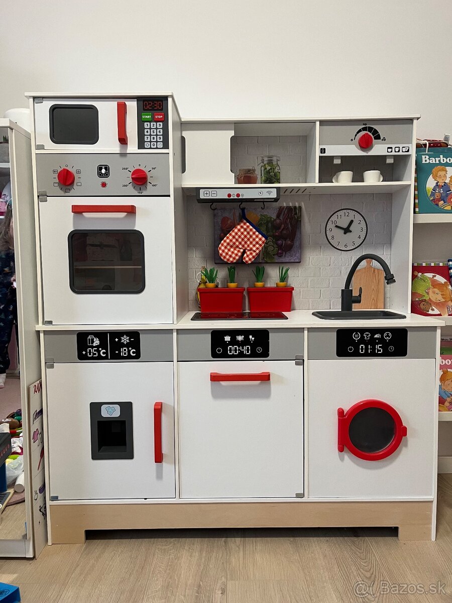 Funguje, svieti, vydava zvuky- varna doska , digestor, vodovodny kohutik.