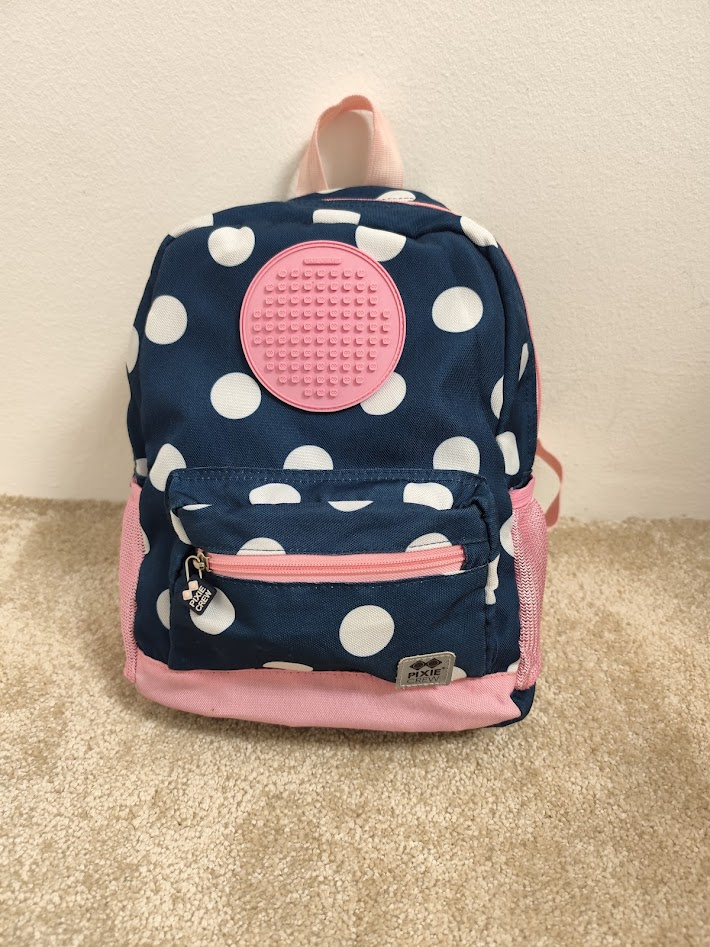• ružová silikónová plocha s možnosťou kreatívne si batoh ozdobiť