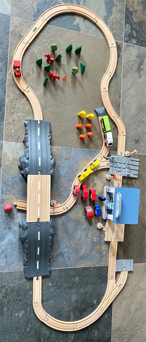 Sada drevenych kolajnic s mostom, cerpacou stanicou a doplnky