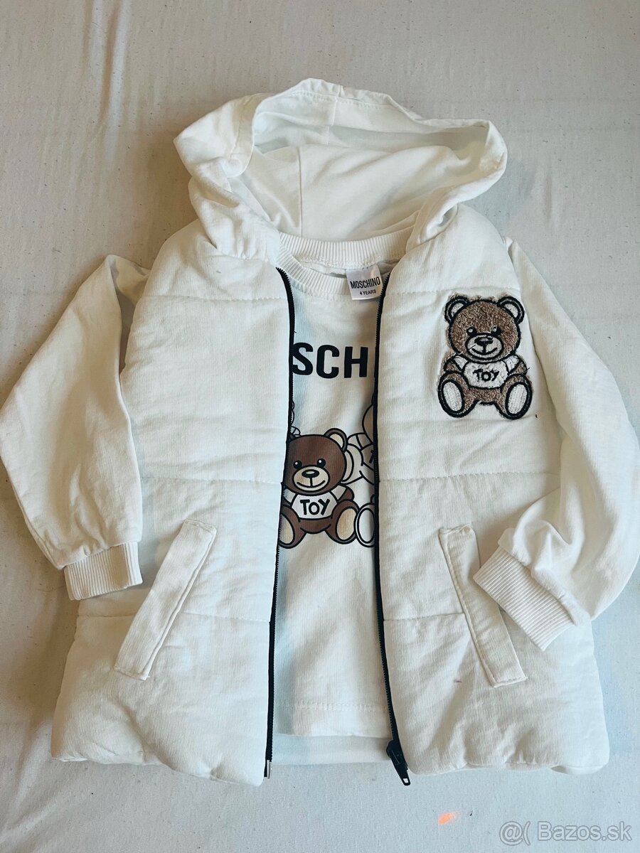 Na predaj krásna kvalitná súprava značky MOSCHINO vo veľkosti 3 - 4 roky. Súprava je úplne nová, je to 3 komplet mikina & tepláky & zateplená vesta. 100% bavlna, príjemná na telo. Vhodná aj ako pekný darček.