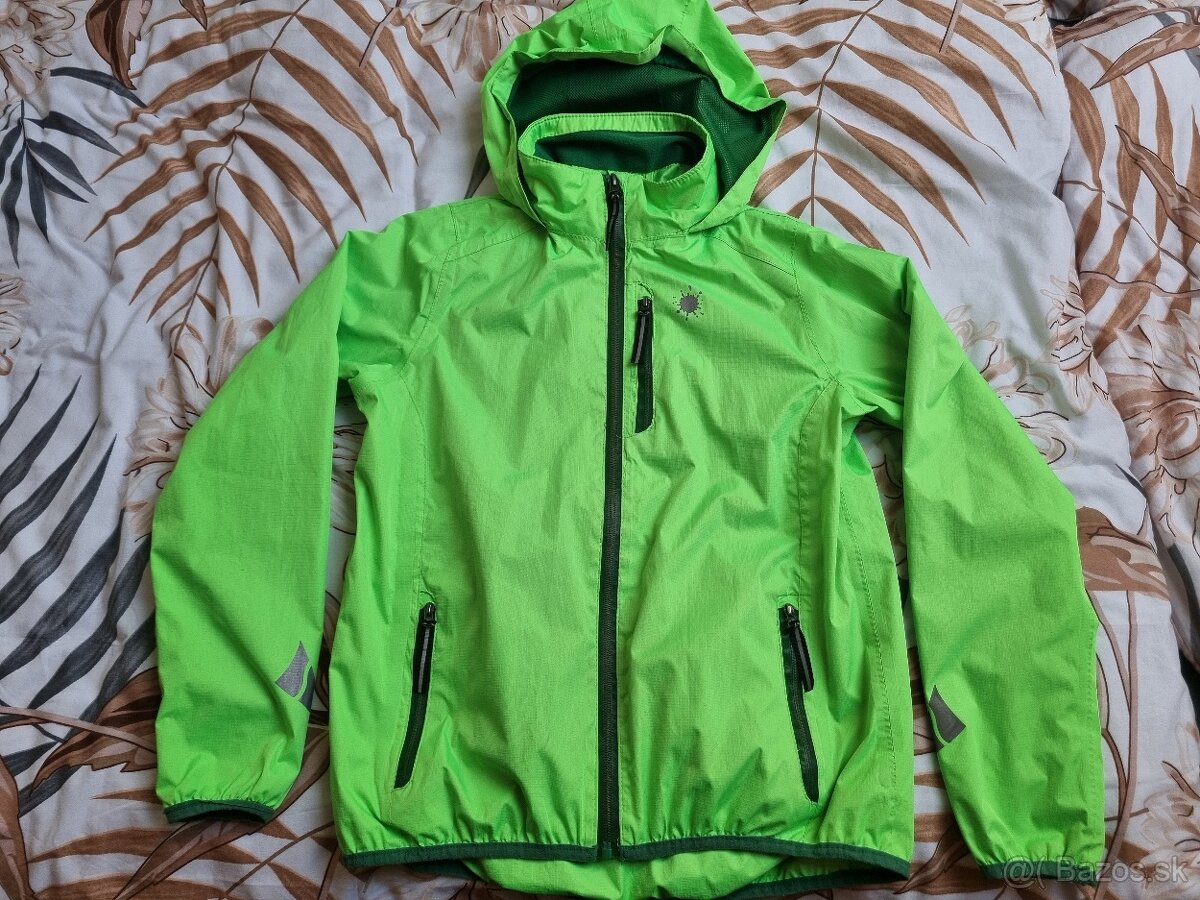 Detská bunda na športovanie svetlozelenej farby zn. CRIVIT, veľkosť 158/164 (12-14 rokov) so zapínaním na zips. Bunda má kapucňu, 3 vonkajšie vrecká na zips a 2 vnútorné vrecká na suchý zips.