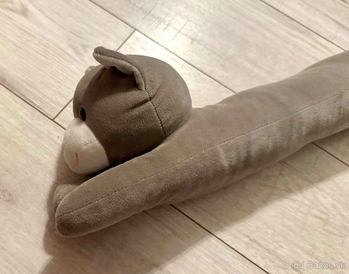 Dlha plysova macka, povodny ucel - proti prefukaniu popod zle tesniace okna, ci dveri. Syn ho mal ako mojkacika na zaspavanie