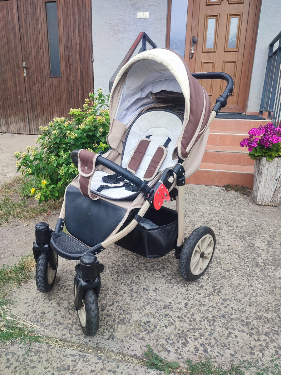 Predám tento skladací kočík Camarelo EOS v béžovej kombinácii. Po dvoch deťoch, ale používaný pomenej. Plne funkčný, zachovalý. Dieťa v ňom vie sedieť, ležať. Dá sa zložiť kvôli preprave, má aj odnímateľné kolesá, má odnímateľný návlek na nohy, nastaviteľnú rúčku, košík pod kočíkom a držiak na nápoj. Kolesá sú nafukovacie a odpružené, takže jazdí pohodlne a nevyžaduje úplne hladkú cestu.