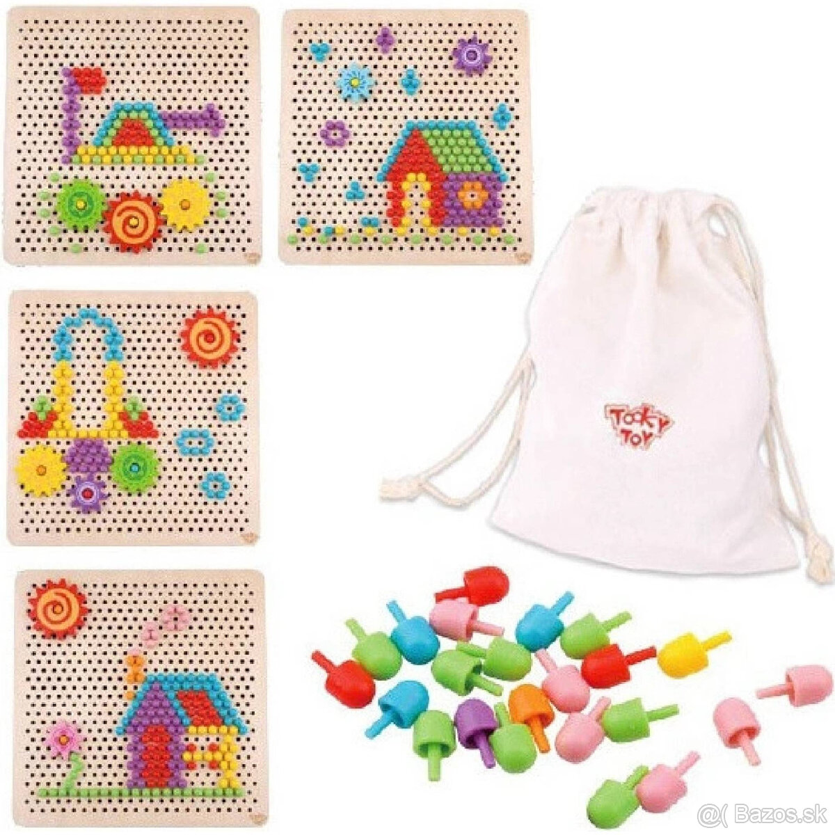 Tooky Toys Veľká drevená mozaika - vkladanie hríbikov