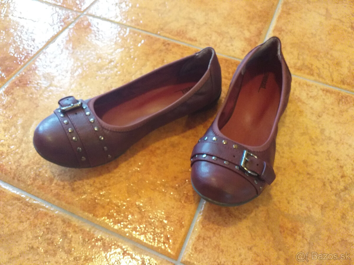 Predáme skoro nové kožené dievčenské baleríny burgundskej farby, veľ. 36, zn. Seveneast (kupované v Humanicu). Osobný odber TN a BA. Kontakt 0904 004 750 alebo bazoš.