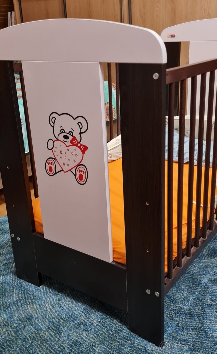 Posunieme kvalitnú drevenú detskú postieľku v TOP stave bez poškodení (slúžila nám iba na veľmi občasné využitie prespatia u rodičov), pribalime aj detské perinky, návliečky, mantinely, samozrejme aj kvalitný matrac.