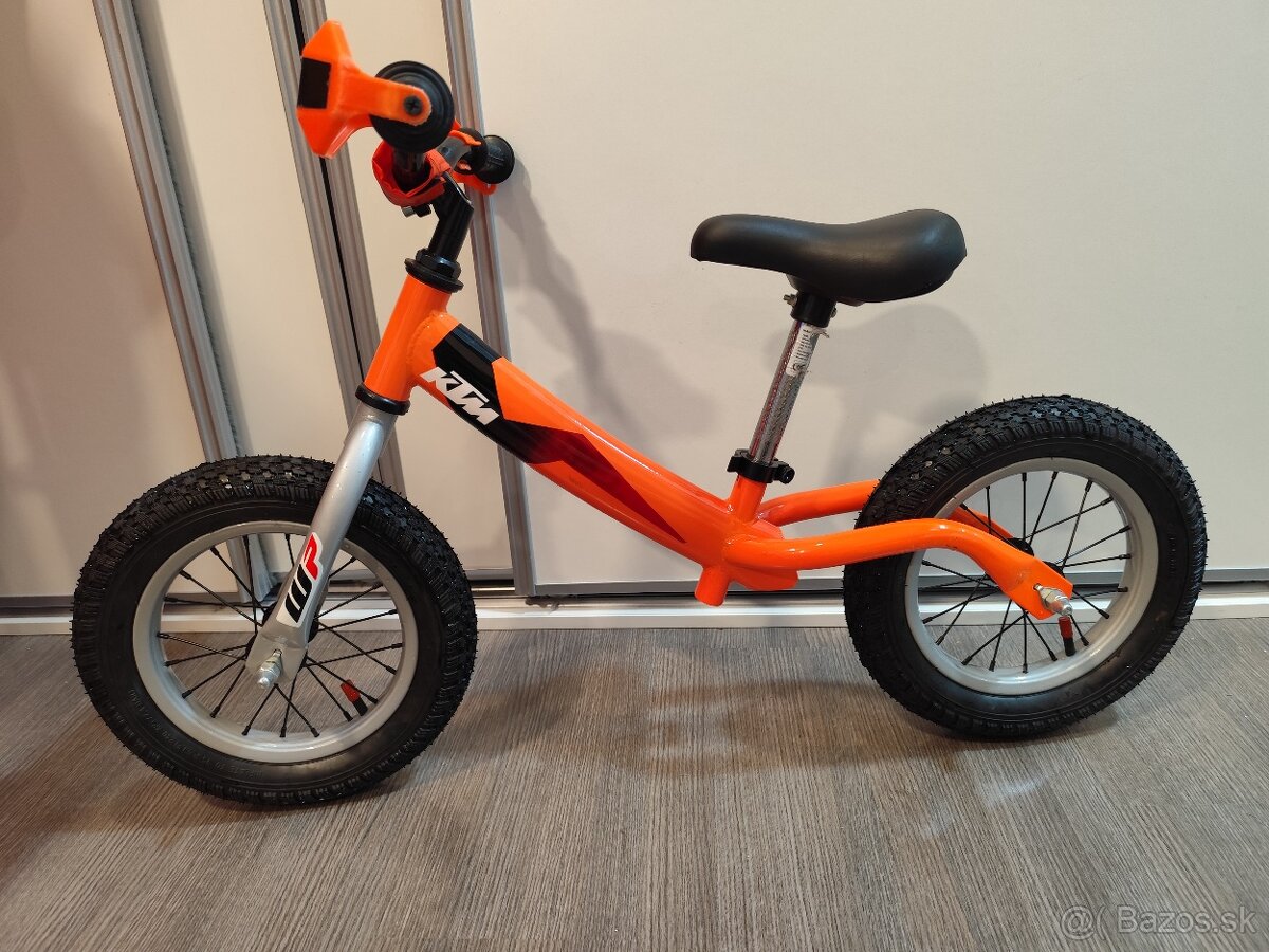 Predám odrážadlo vo veľmi dobrom stave, výškovo nadstaviteľná výška riadidiel a sedadla, nafukovacie kolesá (pneu) 12,5 x 2,4. Značková vidlica WP Suspension, 80% kov, 20%plast. Dizajn pripomínajúci KTM motorku. Pôvodná cena 150€, teraz 65€. Osobný odber MT.