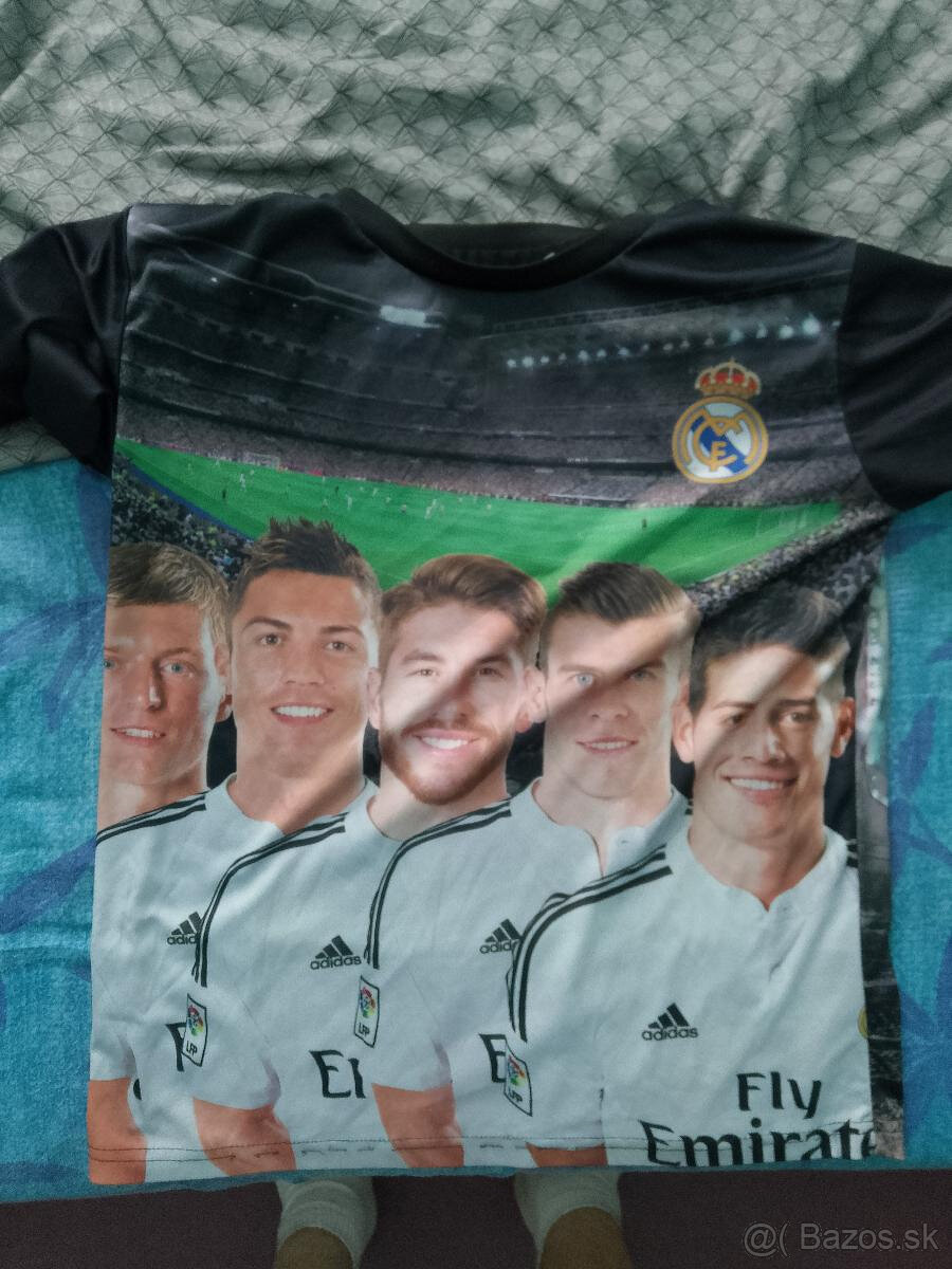 Vhodné pre deti od 7rokov do cca 10-12rokov , postovne +3e. NA prednej strane su hraci timu real madrid , na zadnej strane len napis real madrid žiadne cislo.