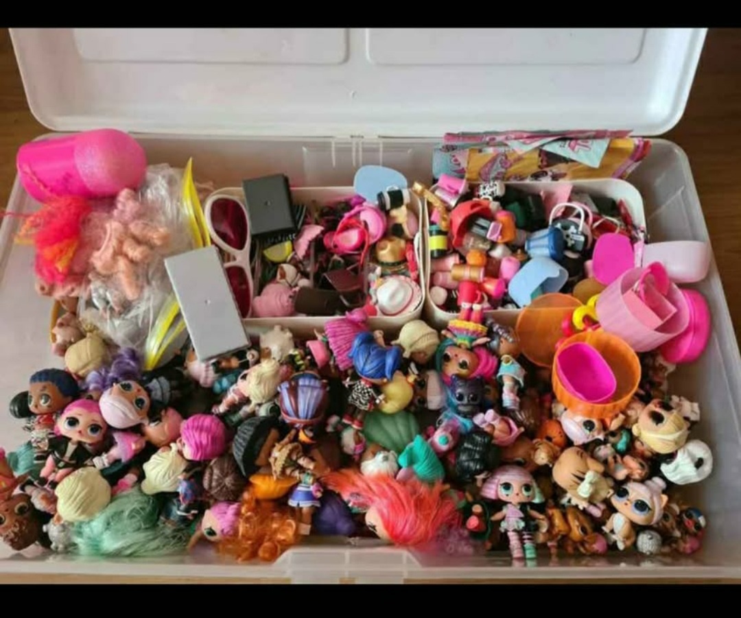 Postavičky LOL,125ks v top stave ,každá postavička ma oblečenie,pititko,kabelku,topánočky.....cena spolu 250e