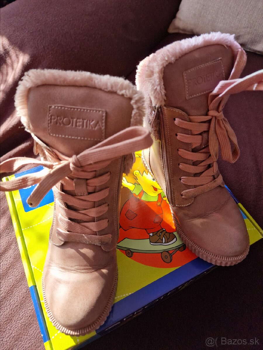 Dievcenske cizmicky protetika - [20.12. 2025]Predam ruzove dievcenske cizmicky znacky protetika, velkost 27. Na spicke je trochu zosuchana vrchna vrstva ale inak su v poriadku.