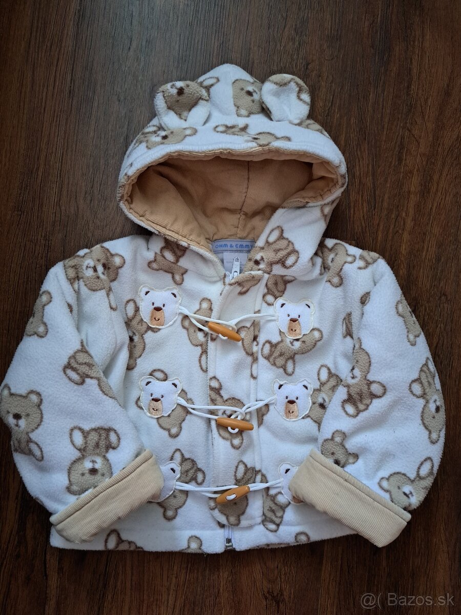 Milá prechodná flaušová bunda s kapucňou s uškami, so zapínaním na zips