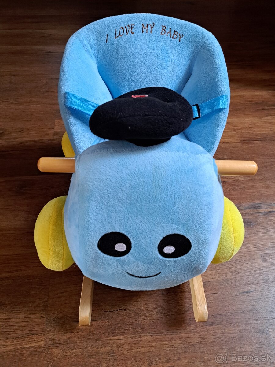 Krásne plyšové hojdacie kreslo - autíčko, po stlačení na volante vydáva zvuky auta