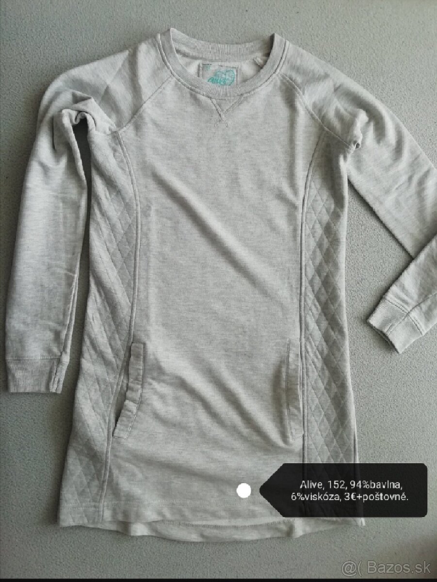 Predám malo nosenú predĺženú mikinu, zn. ALIVE, s vreckami vpredu, obliekanie cez hlavu, bez kapucne.