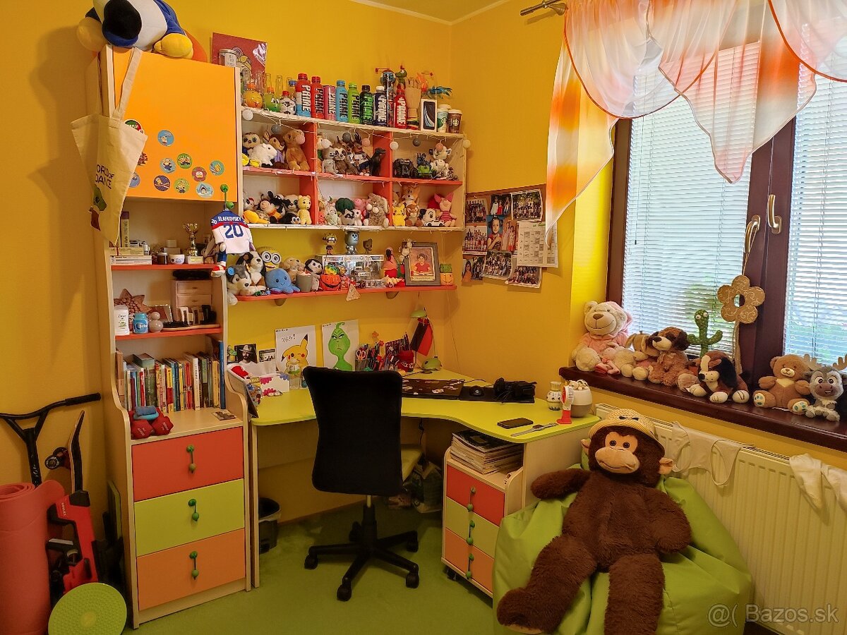 Predám krásnu a zachovalu detskú izbu. V ponuke písací stôl rohový s posuvným kontajnerom so šuflíkmi, polička nad stolík veľká aj malá dosková, úzka skrinka aj veľká skriňa. Spolu 220 eur. Pri rýchlom jednaní tri obrázky Macko Pu a lampička na stolík zdarma.