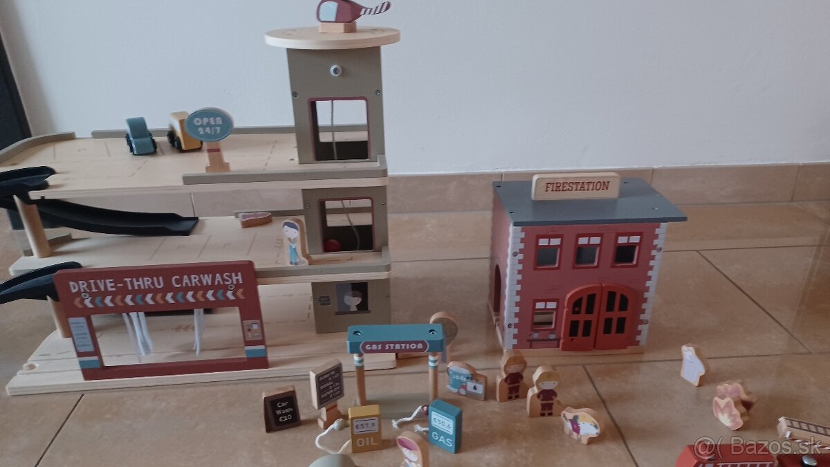Garáž a hasičská súprava z dreva