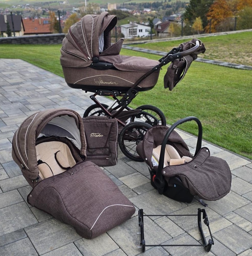 Tako Acoustic je trojkombinácia kočíka retro typu na hojdavej konštrukcii v tvare X s veľkými neotočnými 14” nafukovacími kolesami. Odkladací priestor drôteného nákupného košíka môžeš ďalej rozšíriť pripojiteľnou taškou prenášatenou aj ako ruksak.