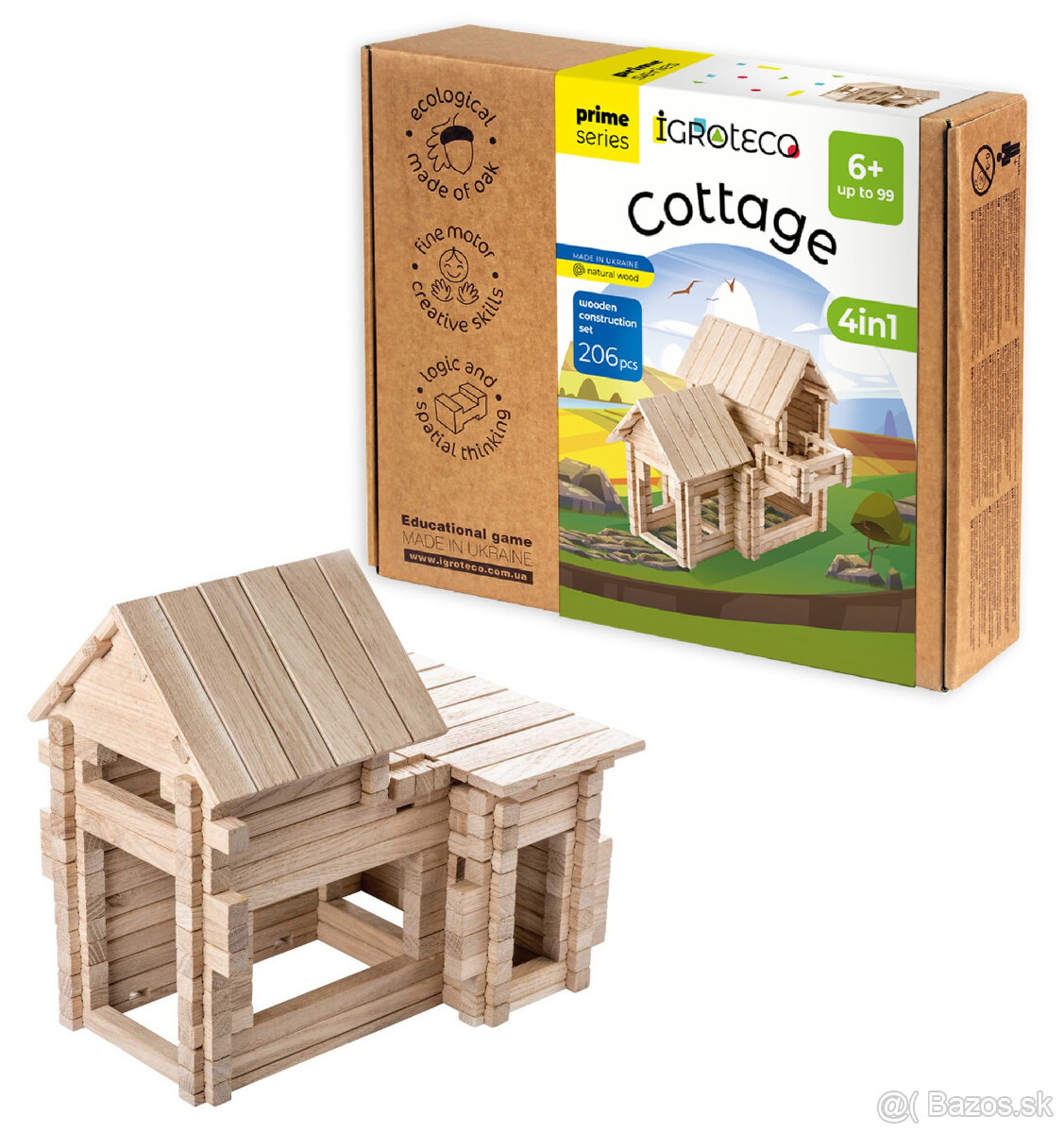 Predám drevenú stavebnicu chata 4v1 od značky IgroTeco (Prime Series) – úplne nová, nerozbalená v originálnom balení.