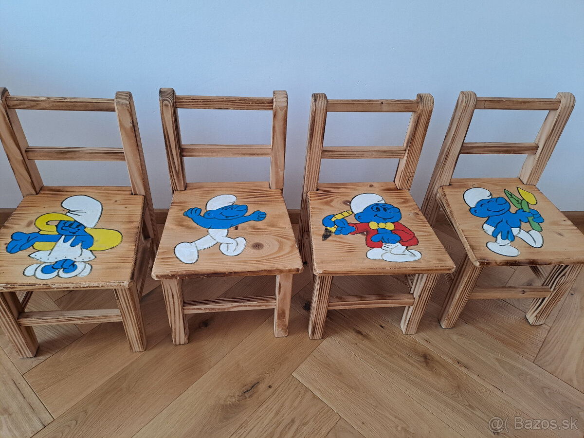 Predam detsky stol so 4 stolickami s motivom smolkov. Nabytok je vo vybornom stave, malo pouzivany. Je vhodny pre 3 -5 -rocne deti. Cena 45eur. Pri rychlom jednani cena mnozna dohodou. Osobny odber Kosice, Presov.