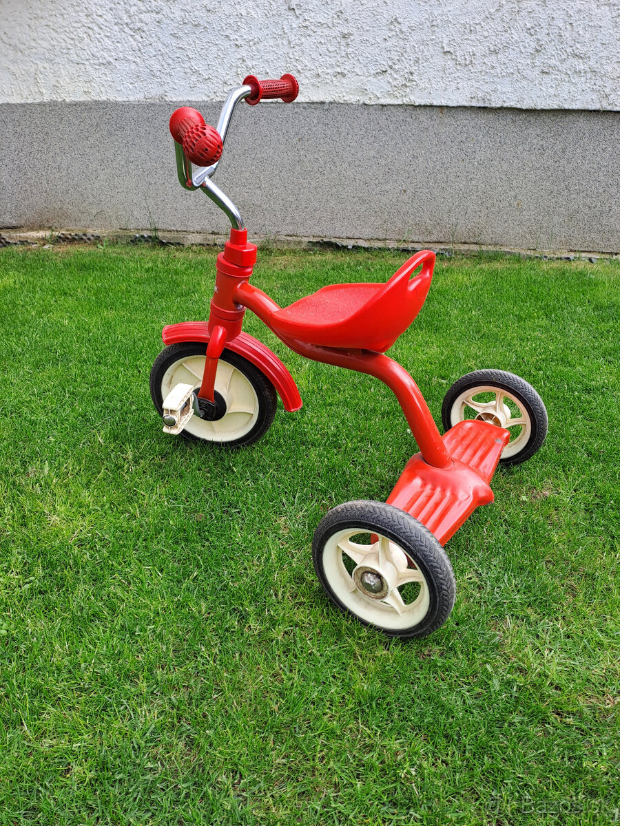 Predam detsku trojkolku v zachovalom stave, cervenej farby. Sedadlo sa da posunut vodorovne do dvoch poloh.