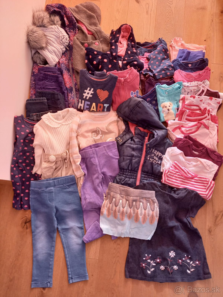 Predam zimne dievcenske oblecenie velkosti 98/104. V sade su tielka, tricka s dlhym rukavom, leginy, saty, svetre, nohavice a vesta.
