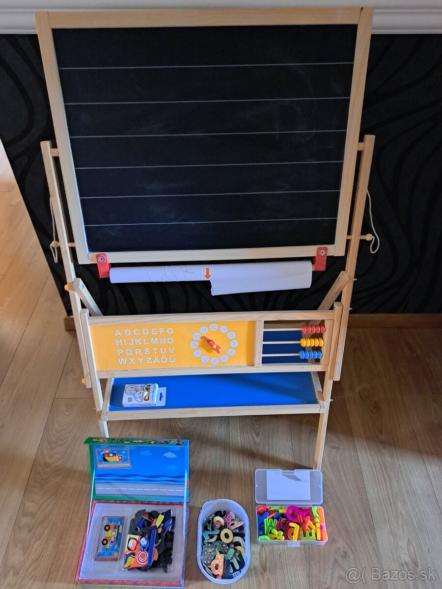 Predám používanú, stále v dobrom stave tabuľu( navrhnutá rolka s papierom) s dvomi sadami písmen, číslic, krabičku kried ( polámané), magnetickú sadu dopravných prostriedkov (2 dieliky chýbajú). Cena spolu 20€. Osobný odber Malacky večer. Prosím, kontaktujte ma mailom.