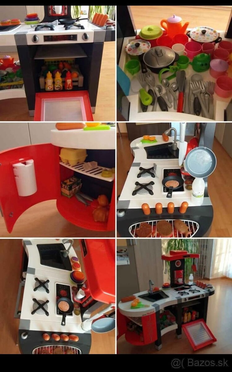 Detská kuchynka s veľkým príslušenstvom - [27.12. 2025]Používané len v interiéri v domácnosti bez zvieratiek, cena je za všetko spolu ako je na fotkách.