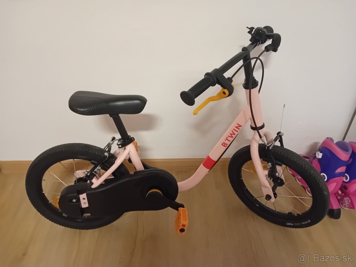 Predám bicykel a odrazadlo 2v1 značka btwin.Veľkosť 14.Su k nemu aj pomocné kolieska. OSOBNY ODBER Trenčín.