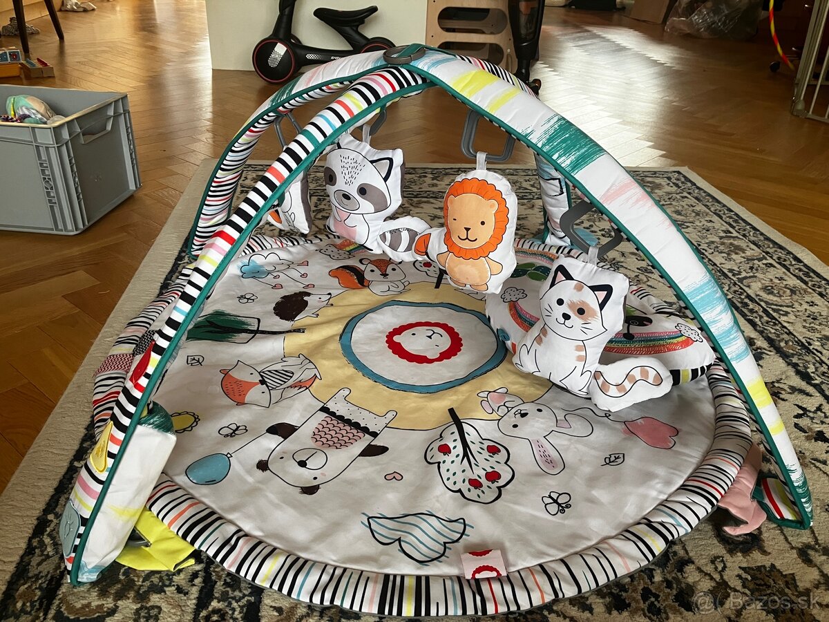 Je pekná kvôli tlmeným farbám. Pre bábätko je príjemná na dotyk. Súčasťou je vankúšik na jednoduchší čas na brušku - tummy time.