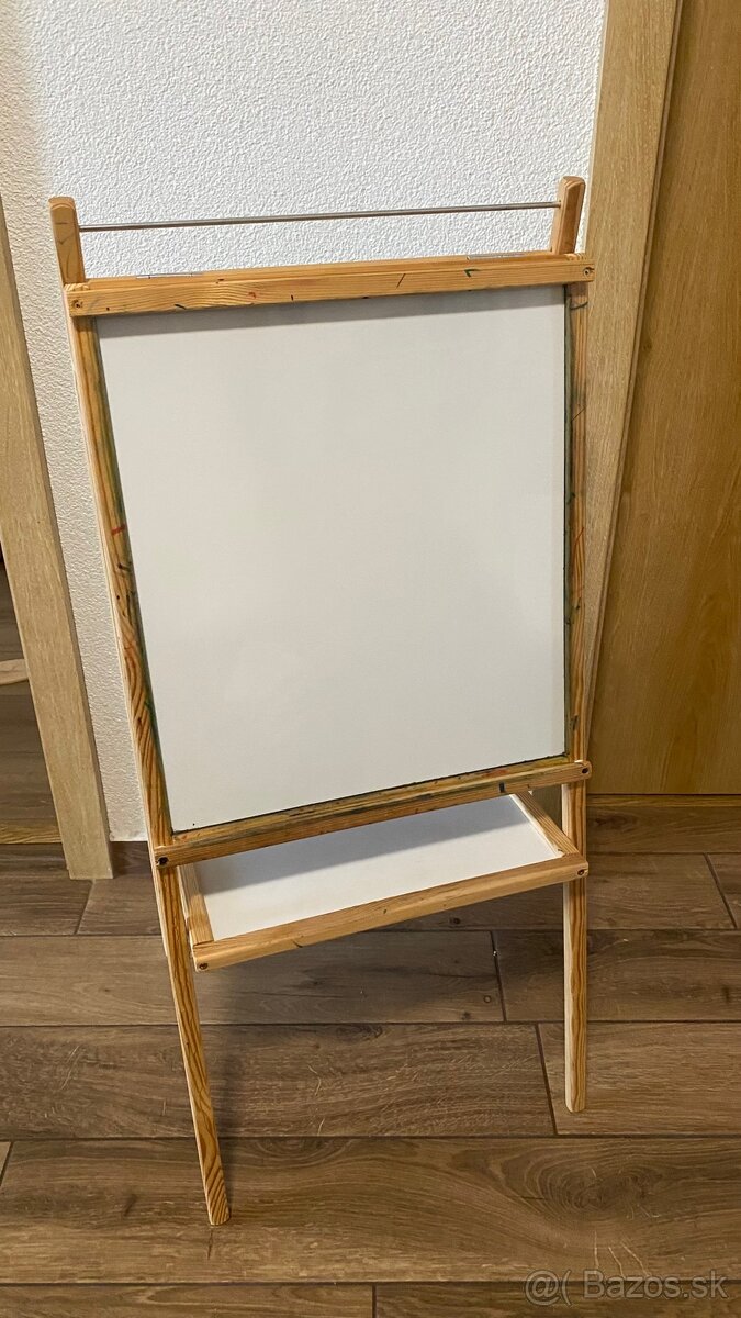 Biela strana na fixy (1), zaroven magneticka (2), cierna na kriedy (3) + moznost prichytit rolku papiera (4)