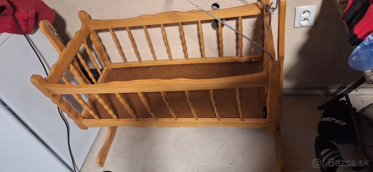 Predám detskú drevenú kolísku. Rozmery kolísky 94x49 cm plus nohy. Bližšie info telefonicky