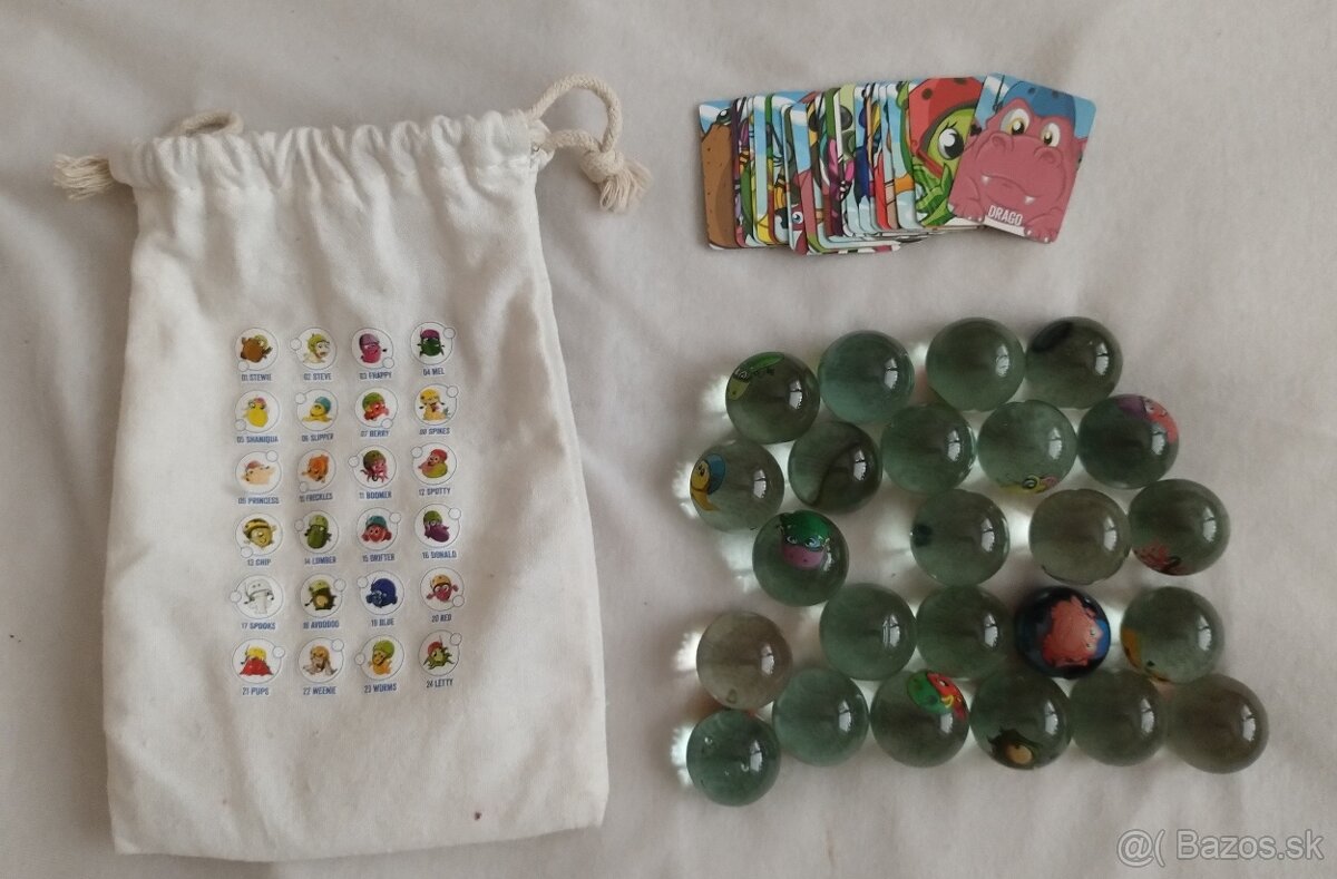 Vrecko + guľôčky 13 ks rôznych + sa niektoré opakujú - spolu s vreckom 6€
