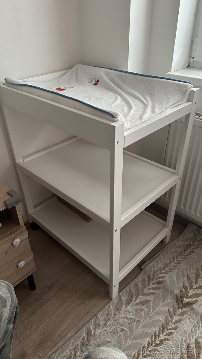 Mäkká podložka na vrchu, 2 police na odkladanie veci, veľmi užitočná a poslúžila, ale už je dieťa väčšie