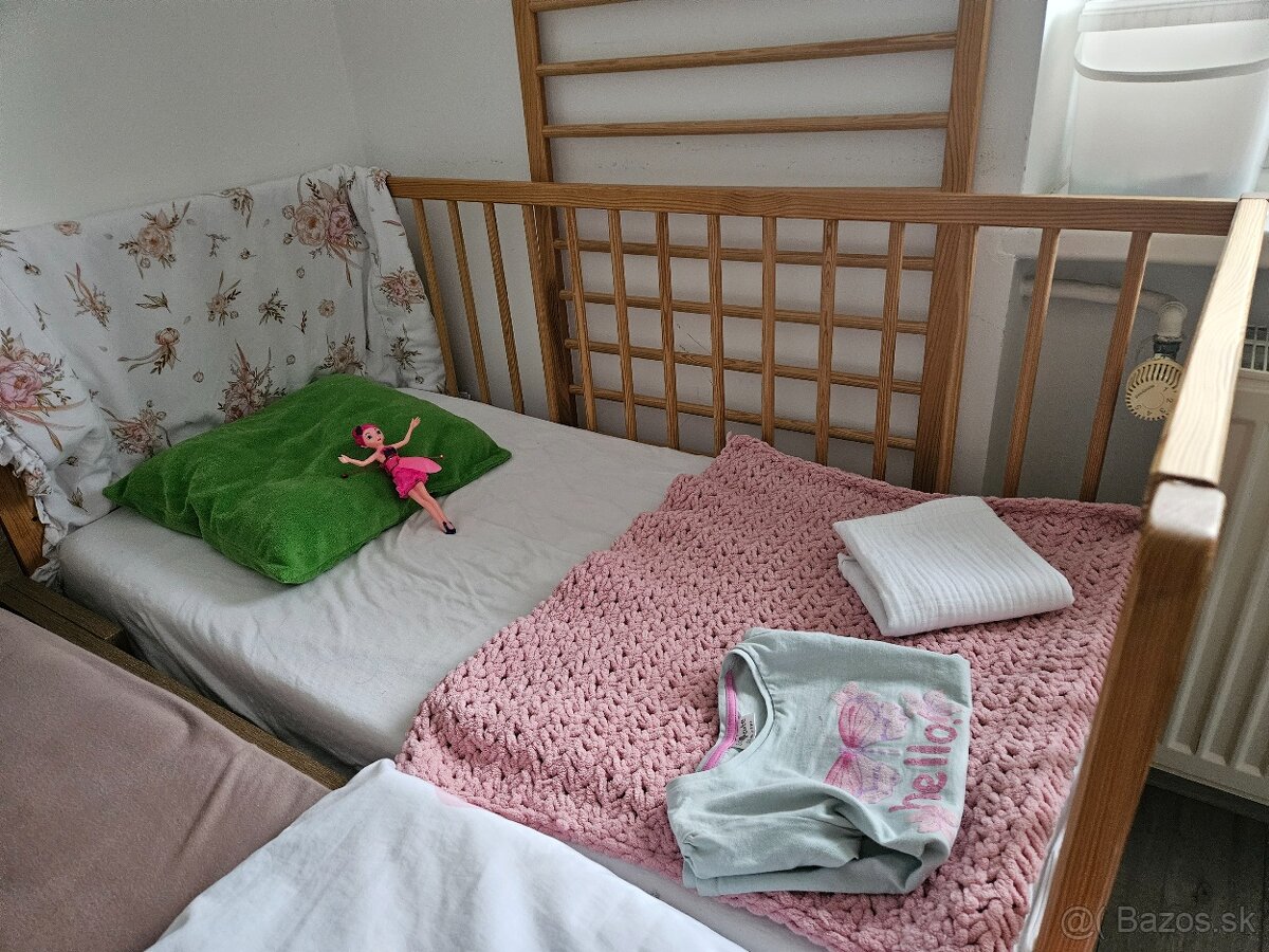 Predam klasicku drevenu postielku s matracom a prebalovacov podložkou. Postielka sa dá dat do 3 poloh. Len osobny odber